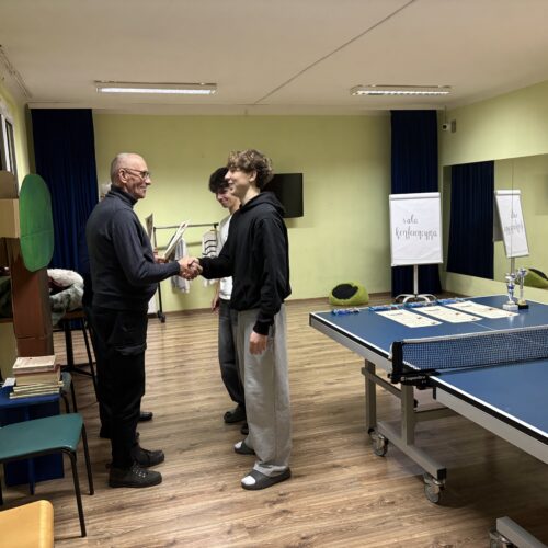 W dniu 15.01.2026 r. zakończony został turniej tenisa stołowego w grach podwójnych. Jak było do przewidzenia, wszystkie finałowe pojedynki były bardzo zacięte i były na wysokim poziomie. Finałowy mecz pomiędzy parą: Mateusz Janowicz i Karol Baczyński przeciwko parze Szymon Lis i Filip Lis zakończył się zwycięstwem braci Lisów w stosunku 3:2. Zawodnicy zostali nagrodzeni pamiątkowymi dyplomami oraz słodyczami. Zwycięska para otrzymała ponadto piękne puchary ufundowane przez organizatorów turnieju.